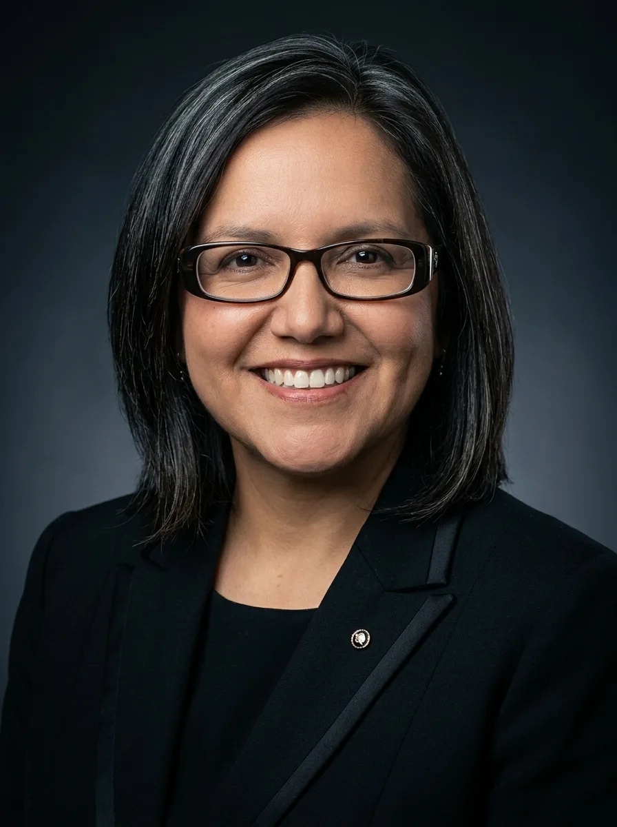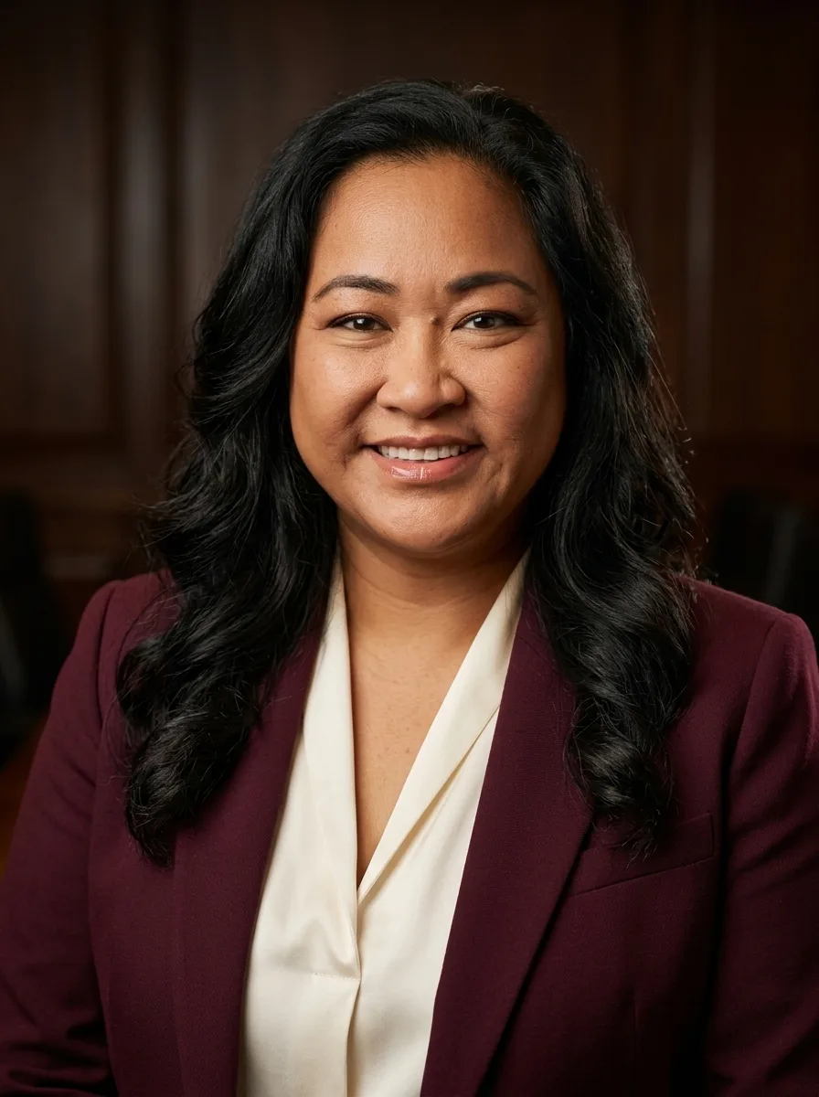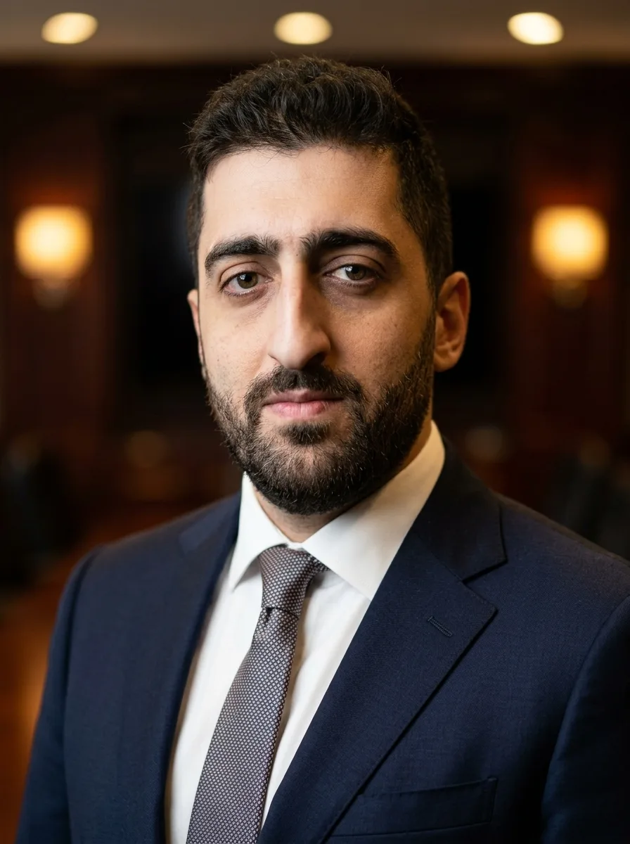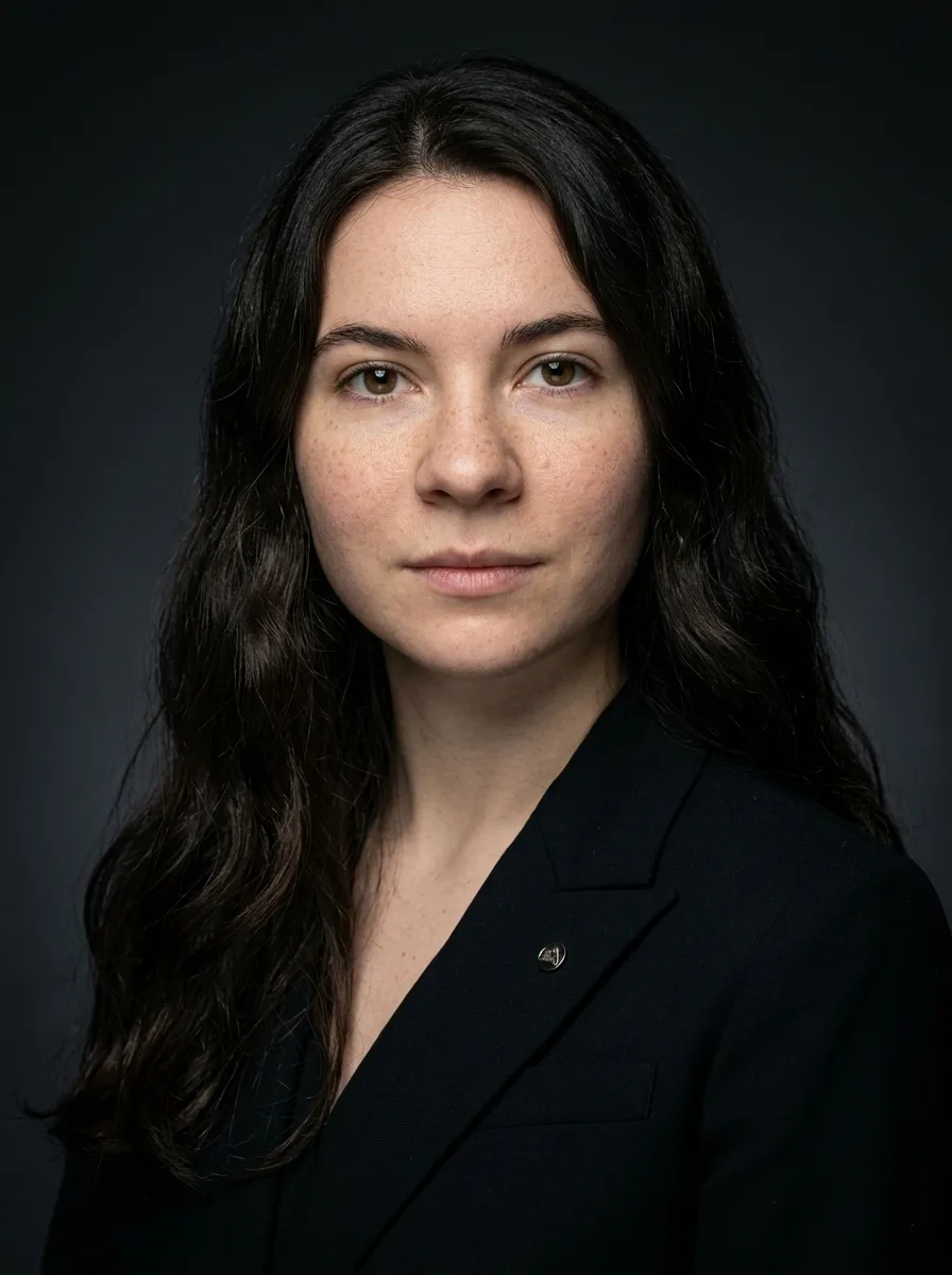 For male executives: a well-tailored charcoal, navy, or black suit. A subtle pocket square adds polish. For female executives: a structured blazer in dark neutral tones, or a tailored pantsuit. Avoid anything flashy. Your expression and posture carry the weight here — the clothing should not compete with them.